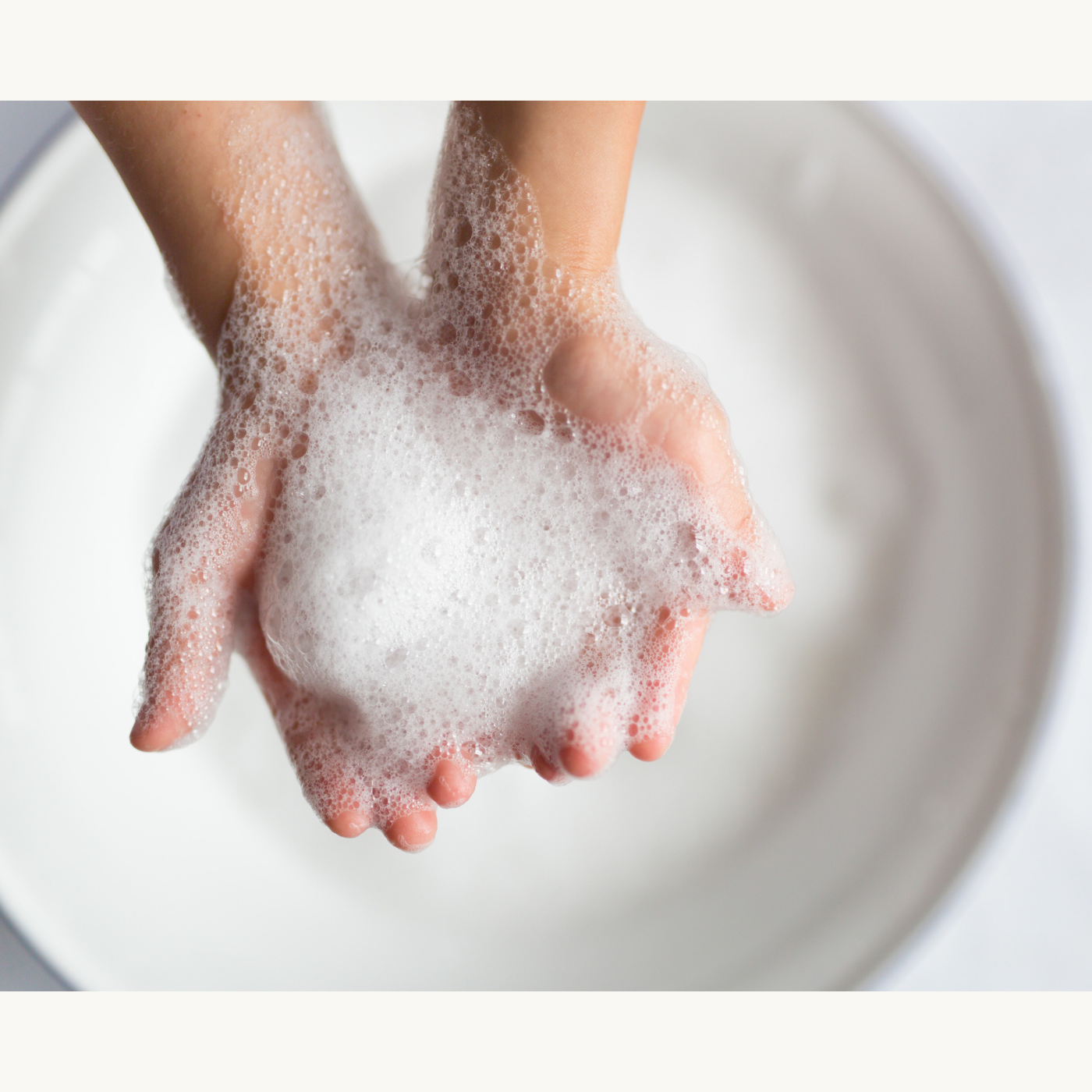 水またはお湯ですすぎ流します。(万が一すすぎ残しがあっても影響はありません)
